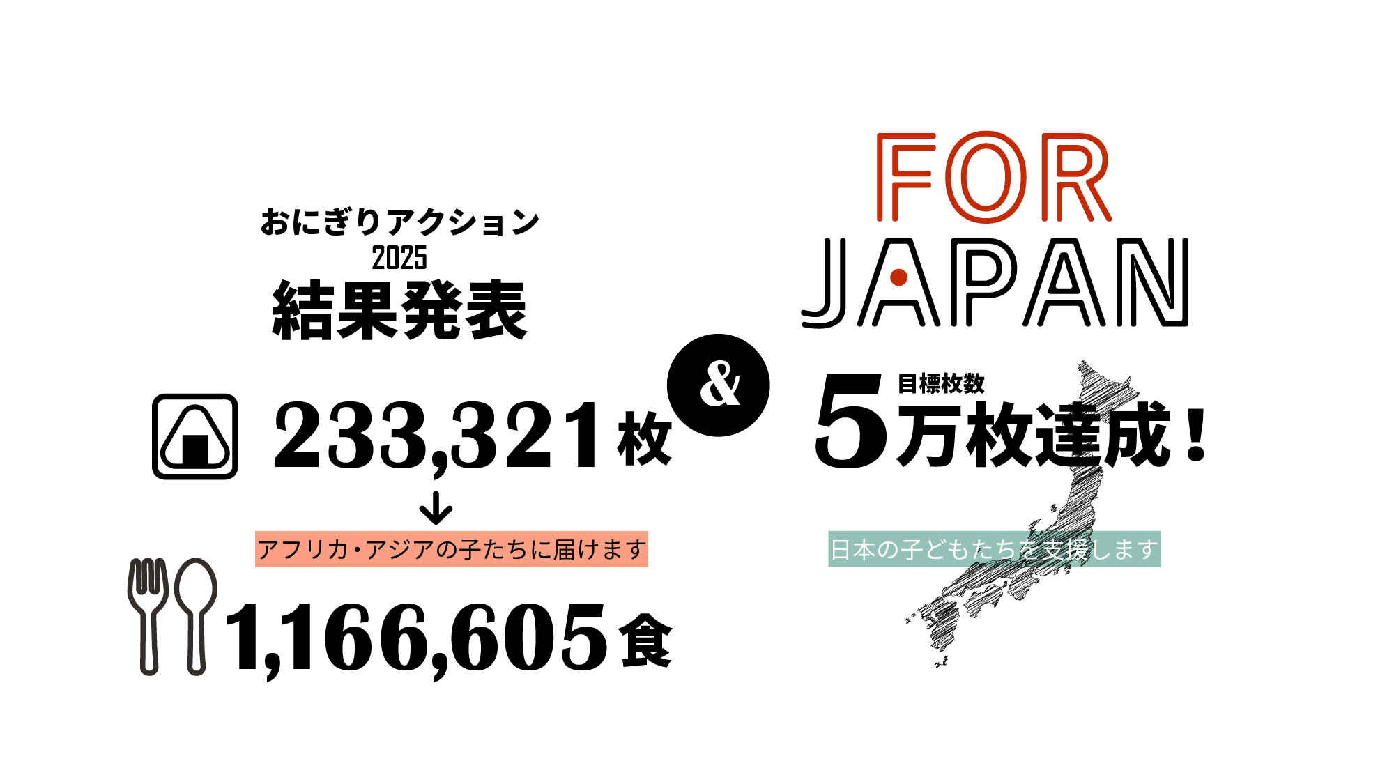 日本の代表的な食である「おにぎり」をシンボルに、おにぎりの写真をSNS(Instagram, X)、または特設サイトに投稿すると、NPO法人TABLE FOR TWO Internationalを通じてアフリカ・アジアの子どもたちに給食をプレゼントできる取り組みです。